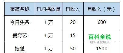 哪些平台上能获得的收益最大? 我们的栏目在运营了一段时间后,我们对有分成平台的分成收入也有了一定的了解,今日头条在之前的会上说过要用20亿来扶持短视频原创内容,做为原创内容的团队,我们要为张一鸣点个赞。 下面是一个我们对于目前分成还不错的一个对比图: 假设我们把播放量定义为每个平台平均一天1万的播放量,那么我们的月收入情况会是怎样呢? 从下面的数据可以看出,如果1天1万的播放量,一个月的分成收入能有2850元,再加上其它一些小平台的分成,总收入在3500左右吧,看上去真的是有点少。但这是平均1天1万播放量的基础上。 事实上,分成当然是随着播放量越高,分成越多。来看一个我们自己的内容案例,