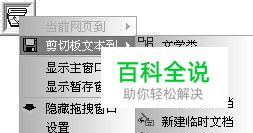 网页内容一拖即存 软件使用起来非常简单、便捷。对于文本内容,用鼠标左键选中并按住不放,然后将其拖拽到桌面上的“文本拖拽接收窗口”图标上,此时,软件会智能地弹出下拉快捷菜单,在该菜单中选中合适的收藏类别后,将左键松开,刚才选中的内容就会自动保存到指定的收藏类别中(如图2)。