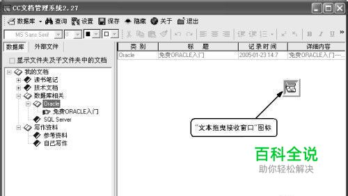 建立分类文件夹 软件启动后会打开主界面,另外还会出现一个图标——“文本拖拽接收窗口”,该图标始终出现在桌面的最前端(可以移动到桌面的任意角落),方便我们浏览网页时,通过拖拽网页或选择的内容到此窗口中,进行快速保存。在主界面左侧区域,Winnote预先为我们创建了几个收藏类别,展开对应的类别名,可看到下一级类别名或收藏的具体内容。在左侧区域中的任意位置右击,在弹出的快捷菜单中,选择“新增文件夹”命令项可以新建一个收藏类别。如图1所示,笔者建立了“数据库相关”等所需的类别。右击某个类别名或者文件名,然后选择有关的命令项也可以进行相关操作。