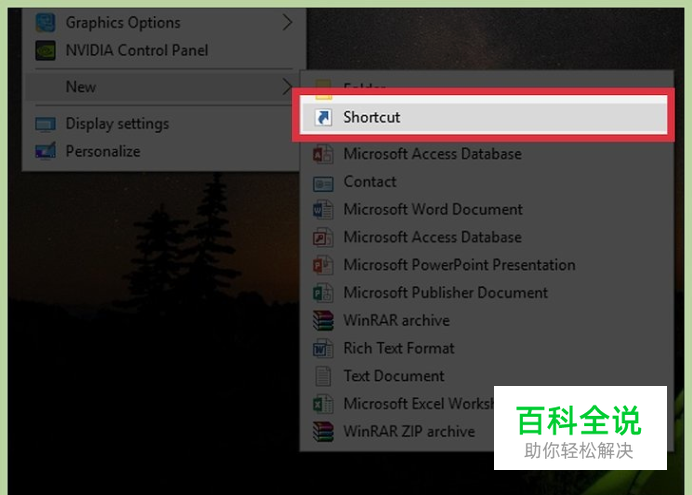 在桌面上右击。选择所显示菜单中的"新建"然后点击"快捷方式"。