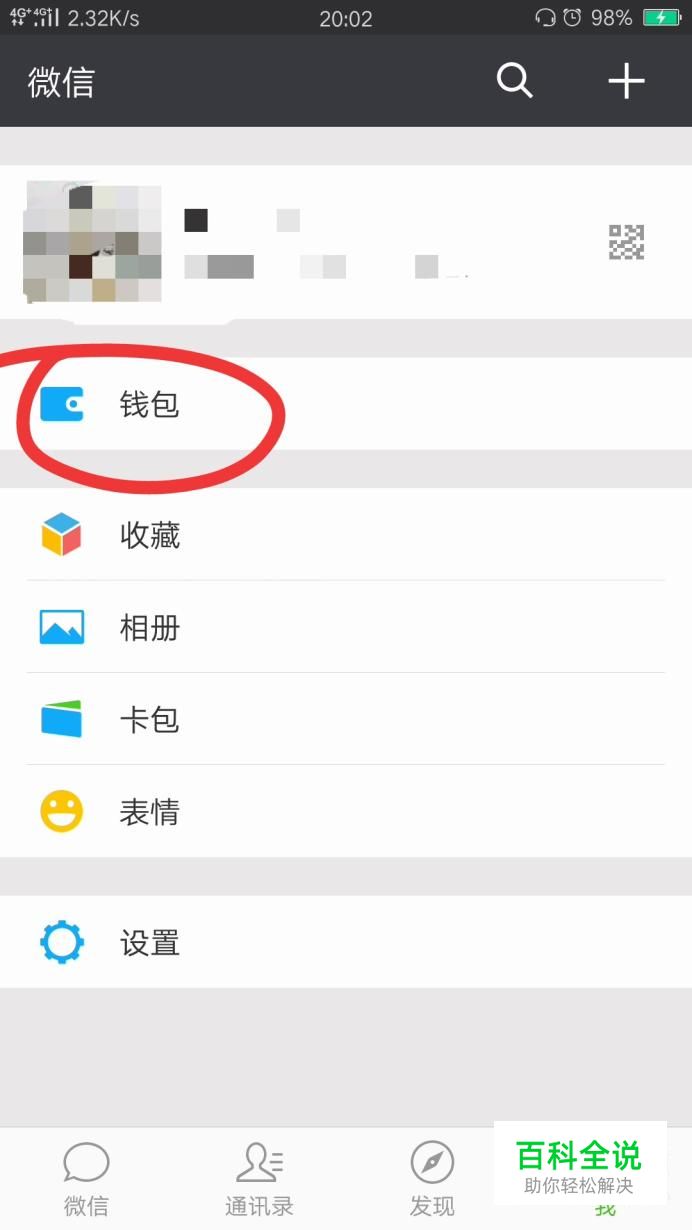 进入微信后,点击界面右下角的"我",找到钱包,然后点进去。