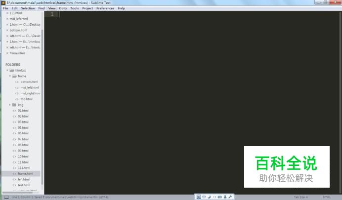 新建一个网页文件frame.html,后缀名是html,用sublime Text打开