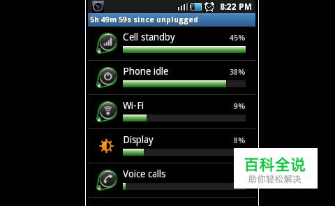 了解哪些是你的电话上最耗电的应用。(设置 » 关于电话 » 电池使用)如果你要了解有关电源使用的情况,Android将提供有关信息。大部分情况下,显示屏将是最耗电的。