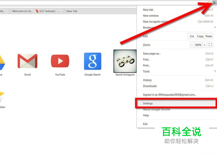 点击Chrome浏览器工具栏的“三道杠”自定义按钮。它在屏幕右上角。选择“设置”。