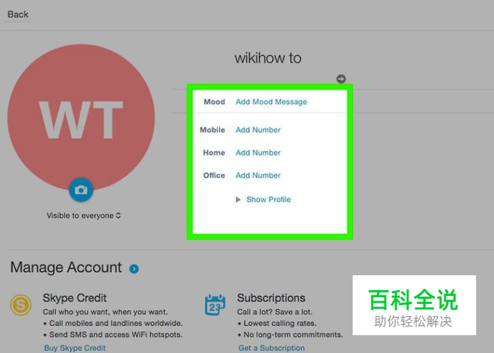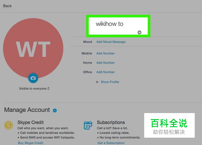 浏览你的个人资料。 在Windows系统中,单击菜单栏上的Skype->个人资料->编辑个人资料.. 在Linux系统中,单击你的Skype用户名,然后选择编辑用户资料。 在Mac上,单击文件->编辑个人资料...