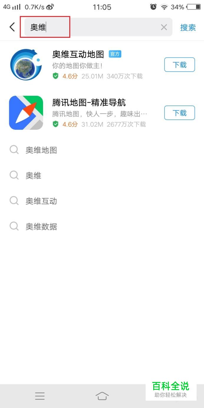 首先,在手机内应用软件搜索并下载奥维互动地图,如图所示