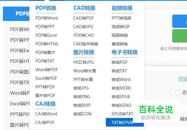 进入在线操作界面后。在菜单栏上的操作功能中找到文档转换下的电子书转换并点击TXT转EQUB选项。