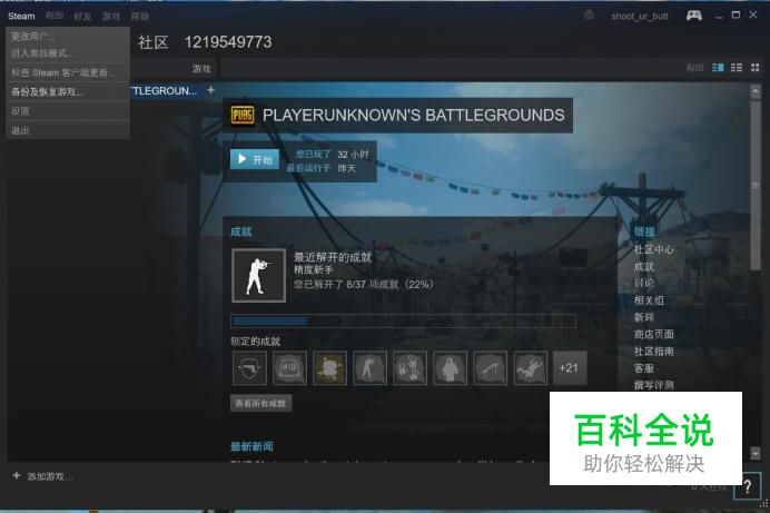 然后,点击左上角的steam,弹出菜单后选择设置项目。