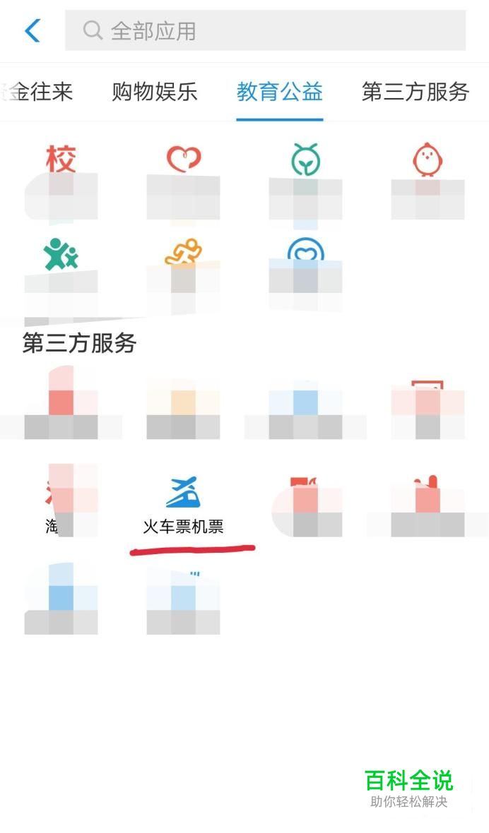 点击第三方服务下的火车票机票,如下图所示。