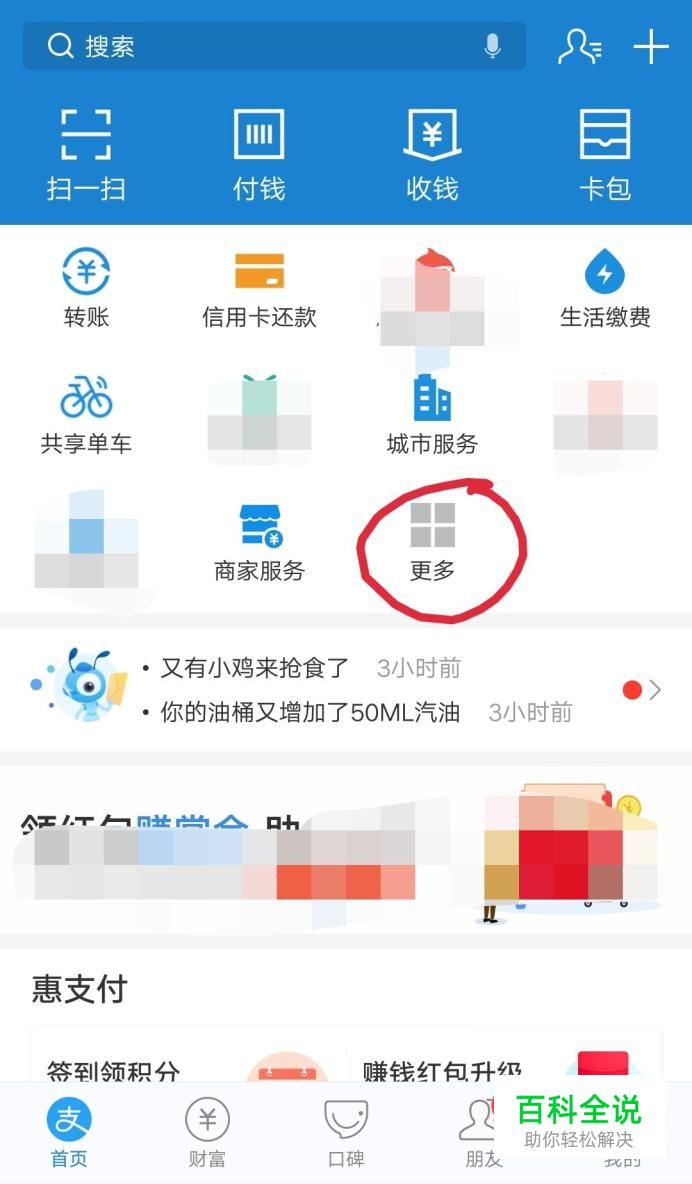 打开手机上的支付宝,点击更多,如下图。