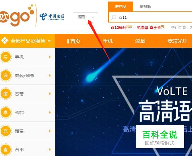 套餐合约到期后,可以办理新的套餐,或者重新办理这个套餐,操作方法如下: 在搜索引擎上搜索“中国电信”,然后进入“中国电信”官网,然后点击你所在的地区。