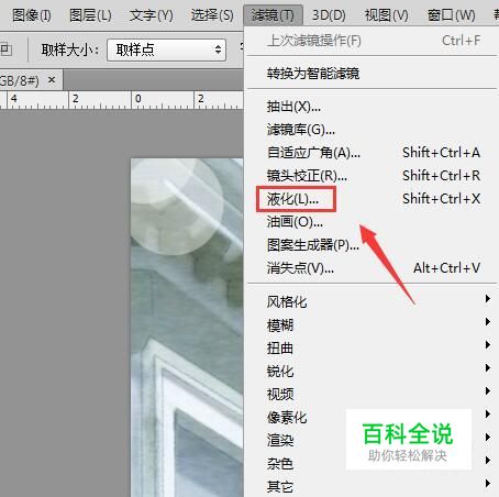 打开图片之后在滤镜菜单那里找到液化选项,如图所示: