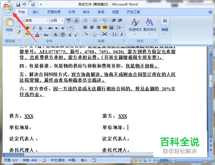 我们打开一个需要加密的Word文档,再点击右上方office按钮