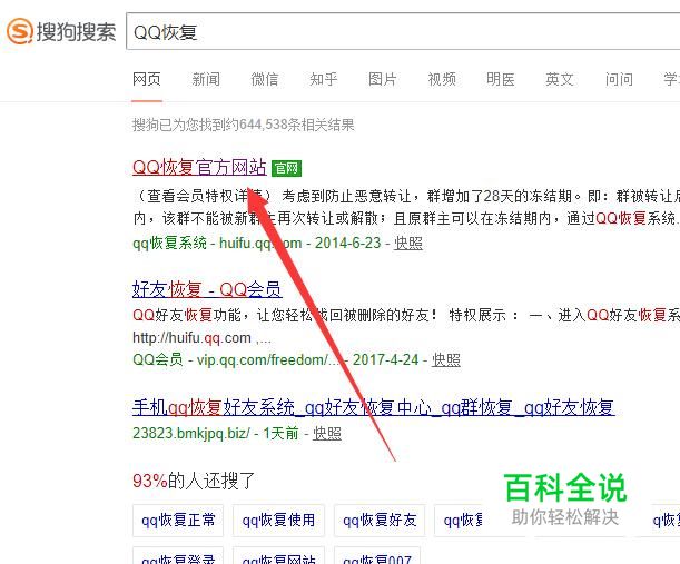 进入之后,搜索“QQ恢复”,点击并进入,如图所示。