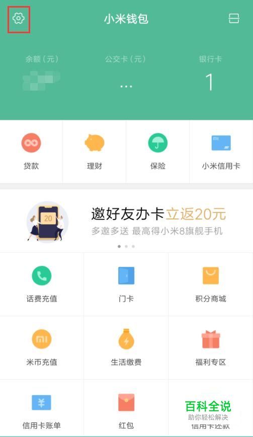 点击小米钱包界面左上角的齿轮按钮,进入设置。