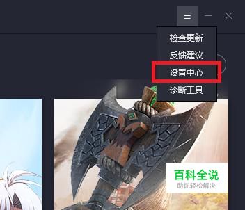 首先,打开并登录腾讯手游助手,点击界面右上角的“≡”按钮,在弹出的下拉操作菜单中,点击“设置中心”选项。