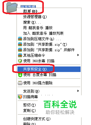 1、选择要共享的文件。如下图是数据共享。右击共享-选择共享和安全。