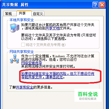 2、选择如果您知道在安全方面的风险,但又不想运行向导就共享文件,请单击此处。