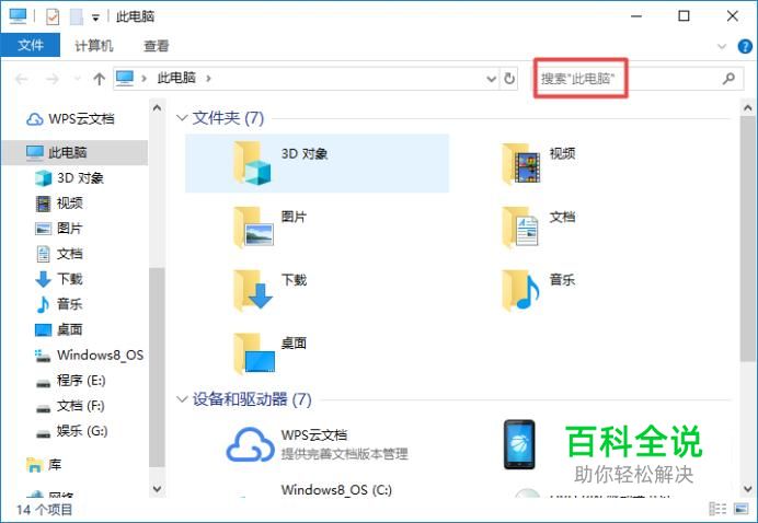 进入此电脑之后,我们点击搜索框;