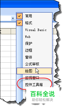 打开EXCEL,右击工具栏上的空白处,在弹出的菜单的选择“控件工具箱”