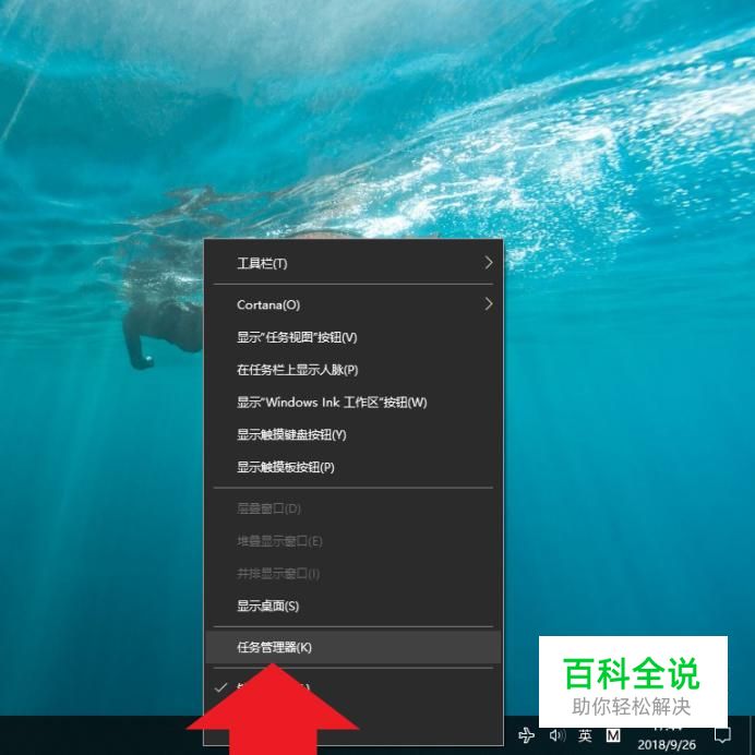首先鼠标右击电脑桌面任务栏,然后点击进入“任务管理器”选项。