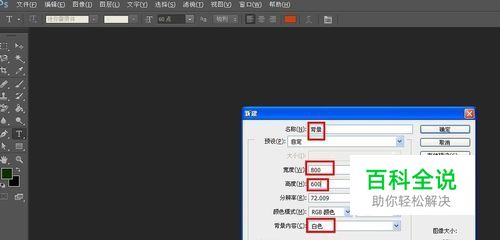 打开photoshop,新建一张大小为800*600,背景色为白色图片,命名为“背景”。单击确定打开一张画布。