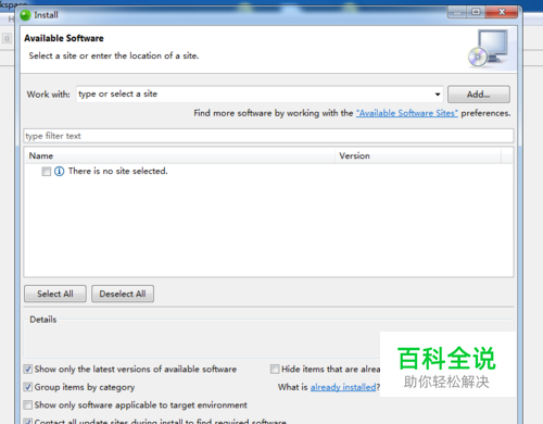 点击上面导航栏中的最后边的Help,选择Install New Software后,出现些界面