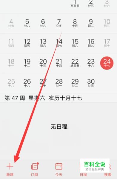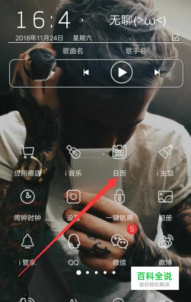 打开手机,找到日历,点击并进入,如图所示。