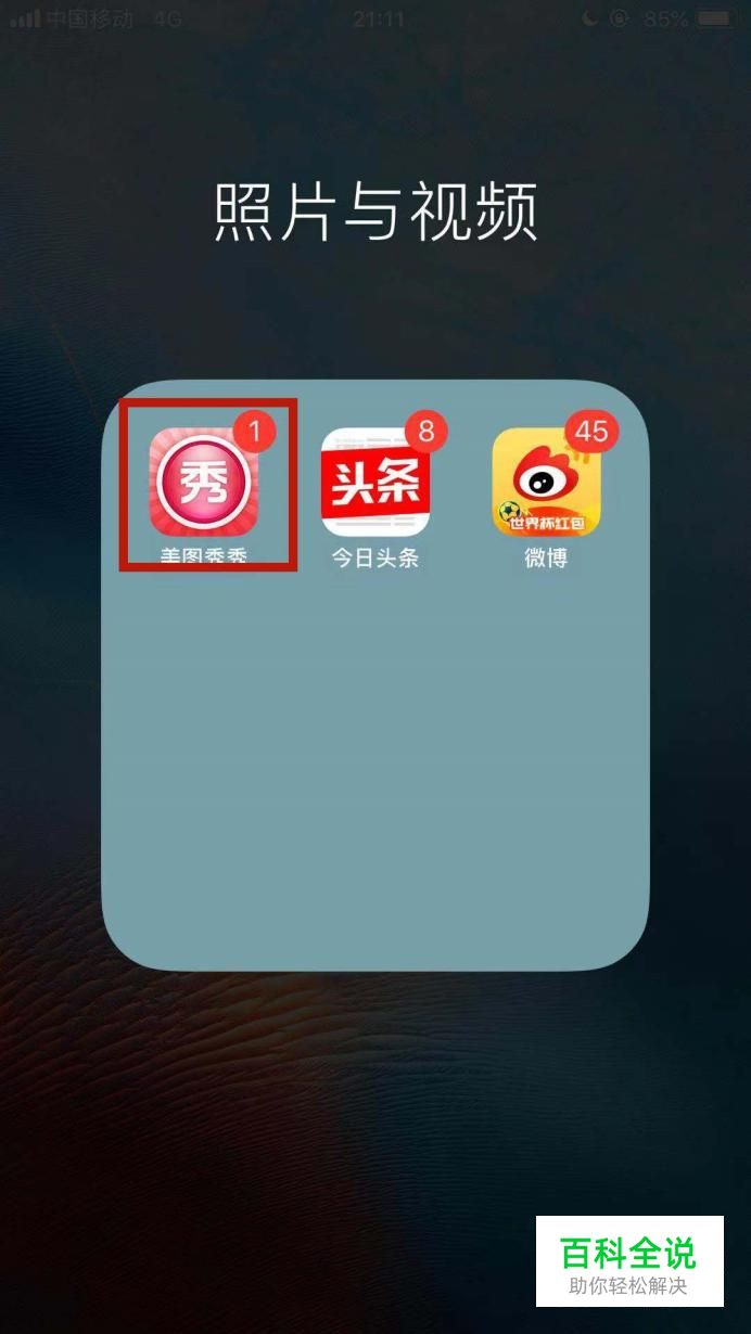 首先在我们的手机桌面上找到美图秀秀,并点击它,如下图所示。