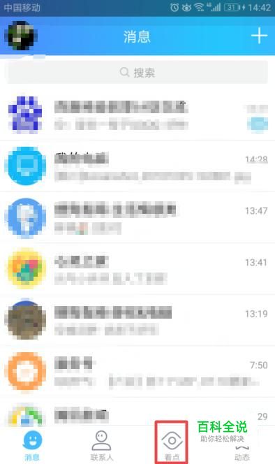 首先,我们打开我们手机上的QQ,然后我们点击看点;