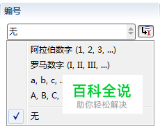 这里这里需要注意的是,选中的主题可以是除了中心主题外的任一主题,在中心主题属性中,是没有编号选项的。 点击三角键,在下拉框中选择你想要的编号形式,罗马数字、阿拉伯数字等。