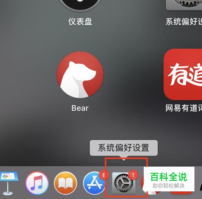 首先在悬浮框中找到“系统偏好设置”并点开。