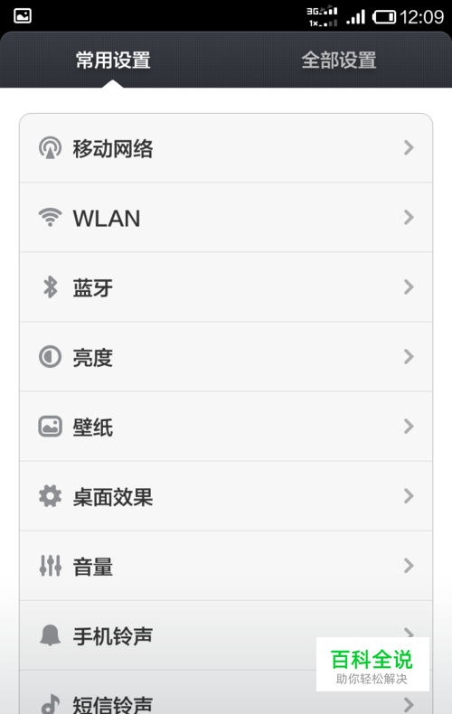 出现了一个常用设置和全部设置