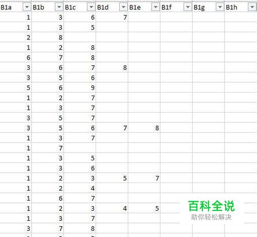 我们先来看数据录入的方式,下面第一幅图是问卷,该题有8个选项,是多选题,被试最多可以选择8个选项。下面第二幅图是数据录入的格式,我们看到有8列变量每列变量中的值可以是1-8的任意一个