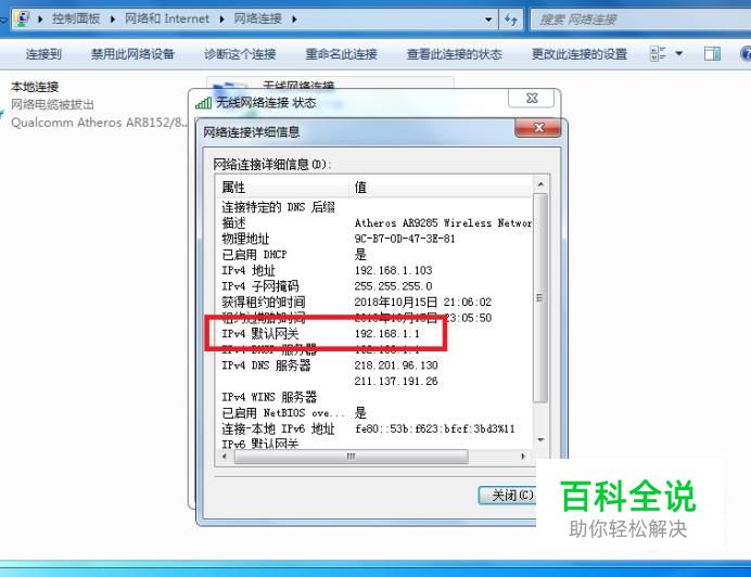 查找路由器登录ip地址。一般路由器底部会带有路由器的ip地址。如果修改过,可在网络连接“状态”栏查看“IPv4默认网关”(也是路由器登录地址)。