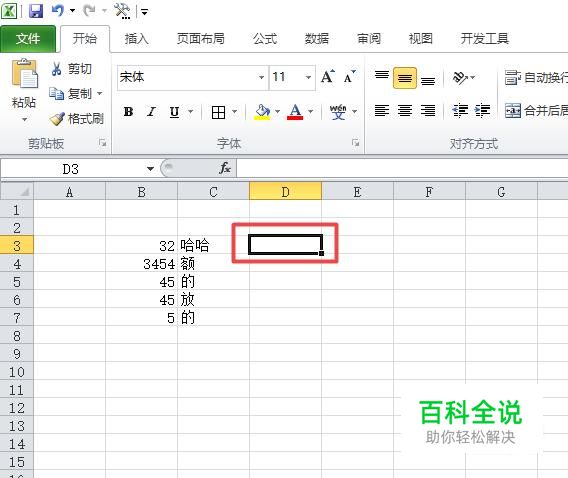 首先,我们打开我们电脑上面的excel,然后我们输入两列数据,之后我们选中图示中的单元格;