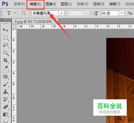 使用ps打开我们的图片,然后在菜单那里找到编辑菜单,如图所示: