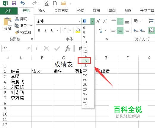 点击合并居中之后表头就居中了,然后在找到字体大小选项,点击之后在下拉菜单那里找到选择字体大小,如图所示:
