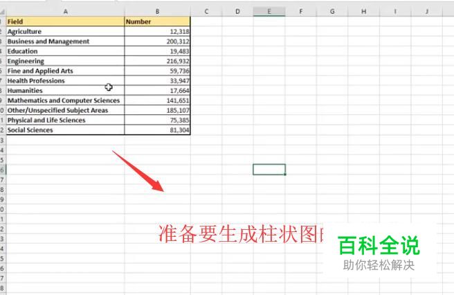 首先我们打开Excel文件,准备要生成柱形图的数据表,如下图所示