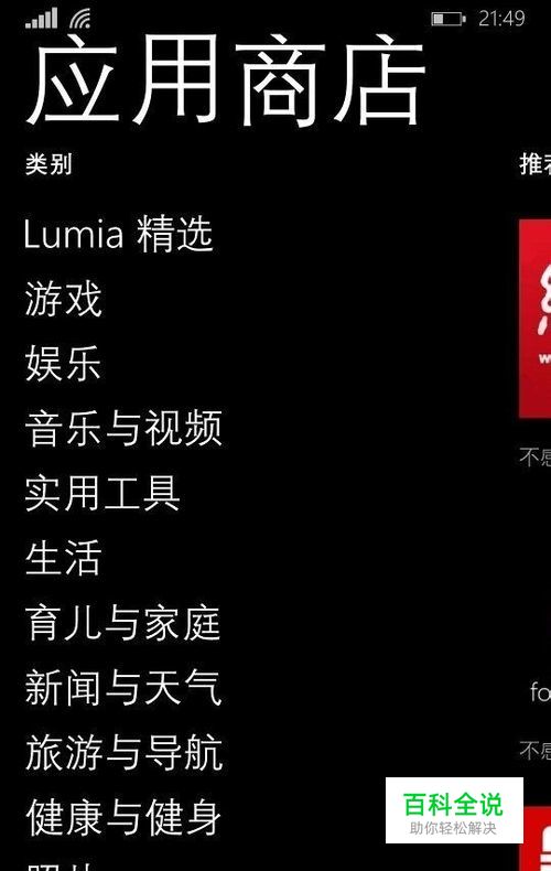 首先打开应用商店,向右滑动,找到 lumia精选:点开: