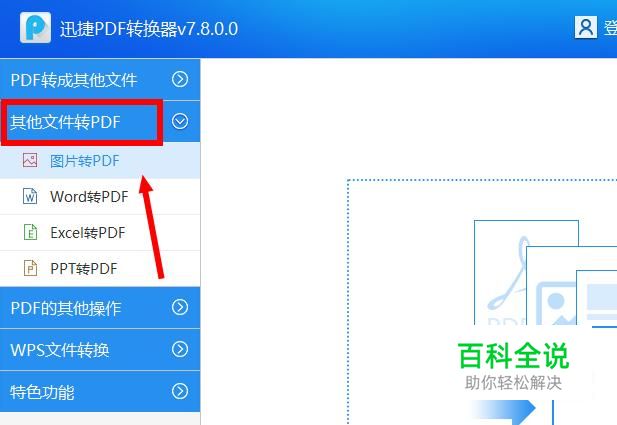打开之后在左侧工具栏中找到其他文件转PDF下级菜单中的图片转PDF