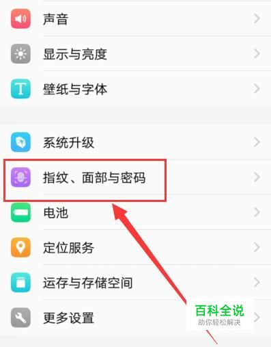 进入之后,找到“指纹、面部与密码”,点击并进入。