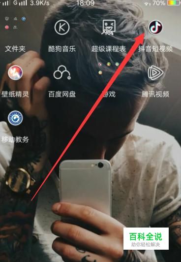 打开手机,找到抖音软件,点击并进入。
