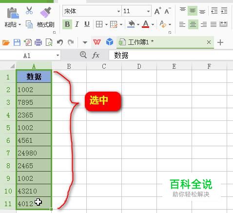 以下图中的数据为例演示操作方法。先把所有数据选中。