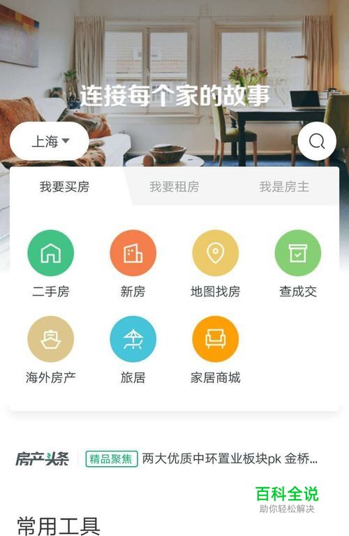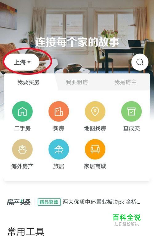 首先打开链家APP,点击左上方定位到“上海”,如下图所示。