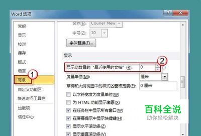 第一步:打开word文档,点击文件,打开高级。在高级中将显示最近使用的额文档设置为O。然后确定。