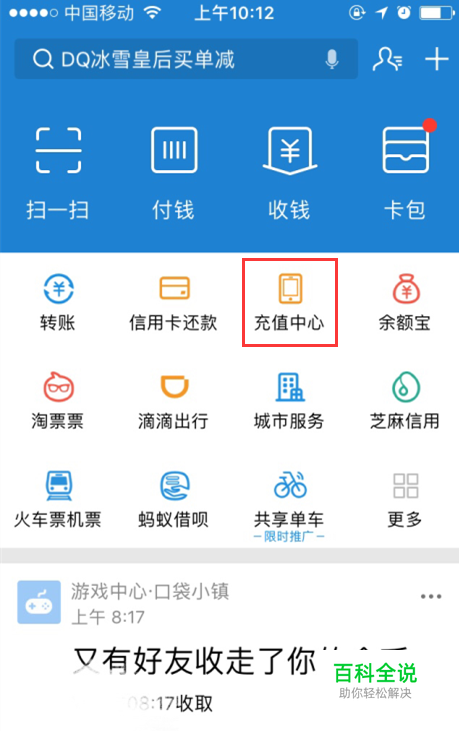 点击页面中的【充值中心】