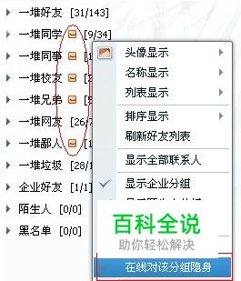 选择分组,右击选择在线对该组隐身,如图