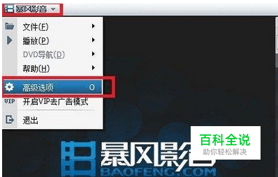 首先打开我们电脑中安装的暴风影音播放器,然后在播放器右上角找到“高级选项设置”如下图: