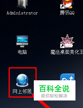 显示桌面,右击“网上邻居”(见图1,红框扩着的)选择“属性”图一